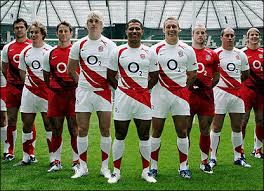 England have returned to the traditional all-white shirts, white shorts with navy and white socks. (The emblem on the shirts is a red rose, rather than the Plantagenet Three Lions displayed on the shirts of the England football and England cricket teams. The strip is manufactured by Nike and O2 is the shirt sponsor.[72] Red was the change strip, although prior to the introduction of the red strip, navy blue was used. Purple was used as the change strip as of the 2009 autumn internationals, reflecting the traditional colour of the original England track-suits from the 1960s, 70s and 80s.
